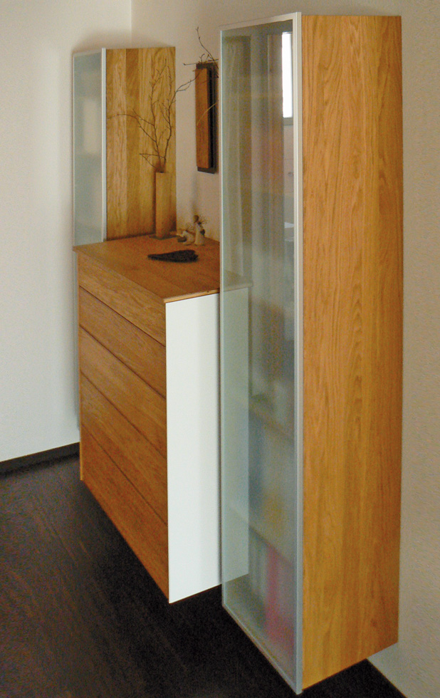 Sie suchen mehr Raum, mehr Komfort (z.B. durch leichtgängige Auszüge), mehr Flexibilität und obendrein mehr Stimmung? Dank intelligenter Schrankaufteilung, leichtgängiger Auszüge, schwebende Schiebetüren und indirekter Beleuchtung können wir Ihnen diese Wünsche erfüllen. Einbauschränke, Zimmertüren, Deckenverkleidungen, Parkett- oder Laminatböden, Garderoben, intelligente Kombinationen aus Wohnen und Arbeiten sind unser Angebot an Sie.